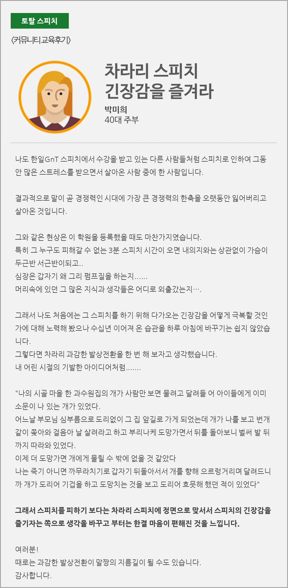 ¹Ú¹ÌÈñ / Â÷¶ó¸® ½ºÇÇÄ¡ ±äÀå°¨À» Áñ°Ü¶ó